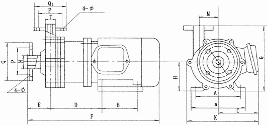 CQF型工程塑料磁力驅(qū)動泵安裝尺寸圖: