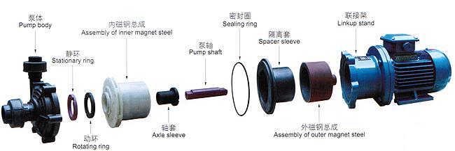 CQF型工程塑料磁力驅(qū)動泵結(jié)構(gòu)爆炸圖: