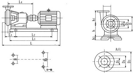 【FSB型氟塑料合金離心泵】安裝尺寸圖: