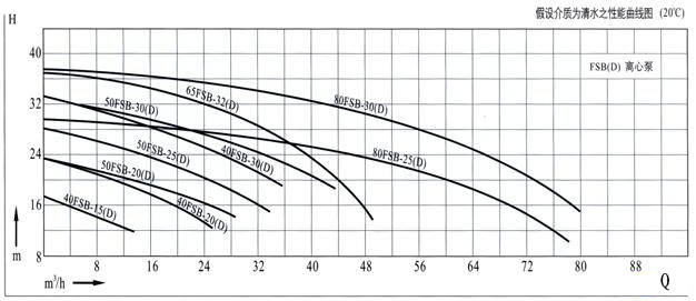 【FSB-D型氟塑料合金離心泵】性能曲線圖: