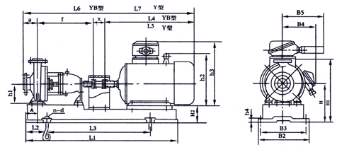 【316L不銹鋼化工離心泵IH型】外形尺寸圖: