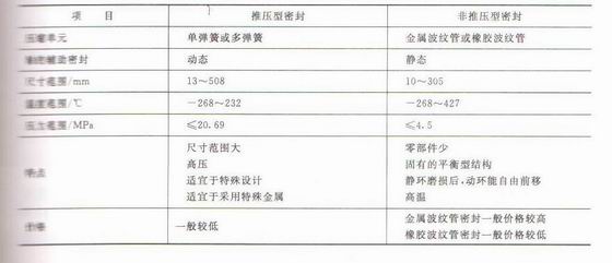 推壓型密封盒非推壓型密封特點的比較見表1-11.