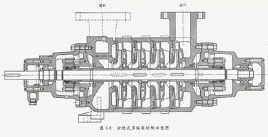 分段式多級(jí)泵的結(jié)構(gòu)特點(diǎn)(圖3 6)結(jié)構(gòu)緊湊,有利于提高標(biāo)準(zhǔn)化、通用化程度。由于這種結(jié)構(gòu)的乏的揚(yáng)程取決于泵的級(jí)數(shù),所以這種多級(jí)泵的揚(yáng)程范圍較寬.與單吸泵想比,雙吸離心泵有較大的流量,較好的吸上性能;與混流泵相比,有較高的揚(yáng)程。
