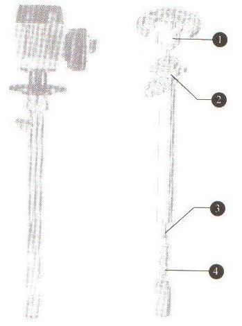 圖3-18 插桶泵結(jié)構(gòu)圖 1-軸承座:2-泵管:3-傳動(dòng)軸:4-轉(zhuǎn)子