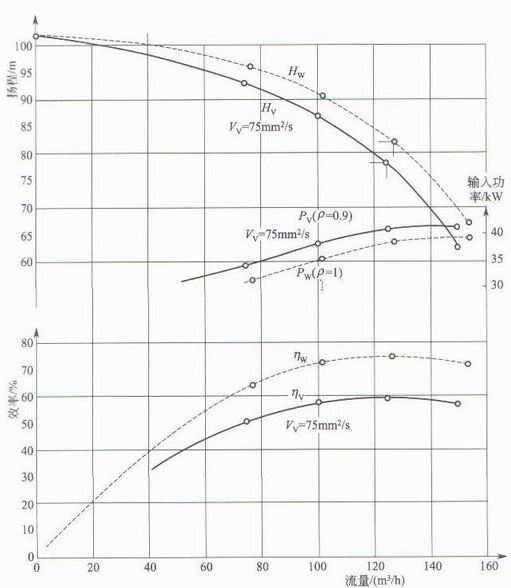 圖2-12 輸送清水和黏性介質(zhì)的曲線對照