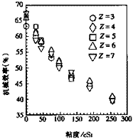 圖8 機(jī)械效率隨粘度的變化圖 9 總效率隨粘度的變化