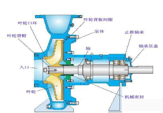 離心泵在工作時,依靠高速旋轉的葉輪,液體在慣性離心力作用下獲得了能量以提高了壓強。離心泵在工作前,泵體和進口管線必須灌滿液體介質,防止氣蝕現象發(fā)生。當葉輪快速轉動時,葉片促使介質很快旋轉,旋轉著的介質在離心力的作用下從葉輪中飛出。泵內的水被拋出后,葉輪的中心部分形成真空區(qū)域。一面不斷地吸入液體,一面又不斷地給予吸入的液體一定的能量,將液體排出。離心泵便如此連續(xù)不斷地工作。