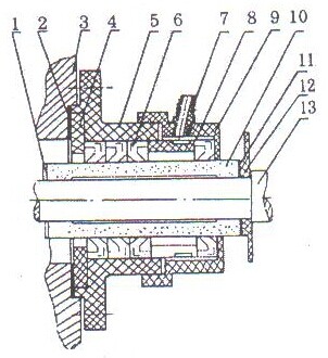 1、密封墊2、擋圈3、密封盒4、油封5、頂圈6、后壓蓋7、軸套8、擋水圈 。 1、葉輪墊2、密封盒墊圈3、泵體4、擋圈5、密封盒6、油封7、水嘴8、水封環(huán)9、密封盒壓蓋10、軸套11、軸套墊12、擋酸環(huán)13、主軸。