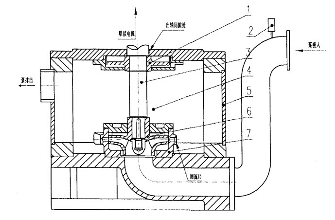 此泵實(shí)現(xiàn)一次引流終身自吸的功能,是依靠出水逆止閥的有效關(guān)閉和吸入管路上的空氣閥的有效開、閉來實(shí)現(xiàn)泵停機(jī)時(shí)的存液與開機(jī)時(shí)的自吸。
