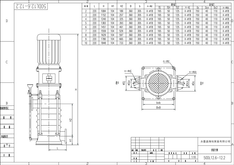 海坦提供DL立式多級泵故障解決方法及安裝尺寸圖: