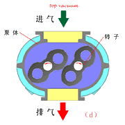 羅茨泵的極限真空除取決于泵本身結(jié)構(gòu)和制造精度外,還取決于前級(jí)泵的極限真空。為了提高泵的極限真空度,可將羅茨泵串聯(lián)使用。羅茨泵的工作原理與羅茨鼓風(fēng)機(jī)相似。由于轉(zhuǎn)子的不斷旋轉(zhuǎn),被抽氣體從進(jìn)氣口吸入到轉(zhuǎn)子與泵殼之間的空間v0內(nèi),再經(jīng)排氣口排出。由于吸氣后v0空間是全封閉狀態(tài),所以,在泵腔內(nèi)氣體沒有壓縮和膨脹。